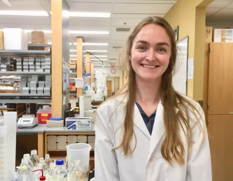 Colette Rogers is a graduate student in the Biochemistry, Molecular Biology, and Biophysics department at the University of Minnesota, Twin Cities. She is co- advised by Dr. Anja-Katrin Bielinsky and Dr. Eric Hendrickson, experts in DNA replication and cancer research, DNA damage repair research, and genome engineering. Colette’s research aims at elucidating the molecular and biochemical mechanisms that underlie the cancer predisposition syndrome Fanconi anemia (FA). Her work applies a combination of biochemical, gene targeting, and imaging techniques to better understand how FA- and FA- associated proteins promote genomic stability. The goal of this research is to discover novel mechanisms to suppress cancer development.